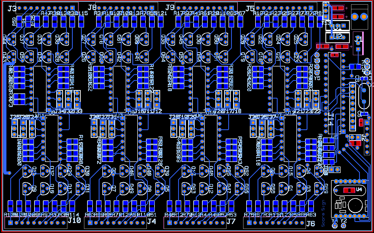 Note: The same driver transistor circuits are repeated to the left and right but the picture has been cropped here to save space.