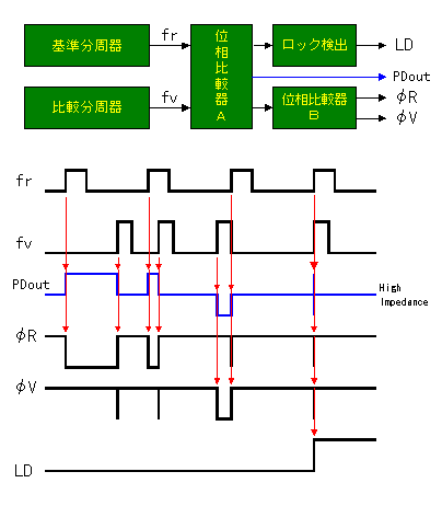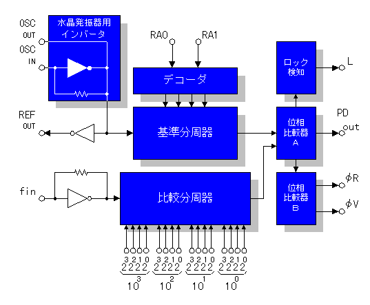 目次→電子回路工作素材集→PLLシンセサイザ発振器(2)→回路説明